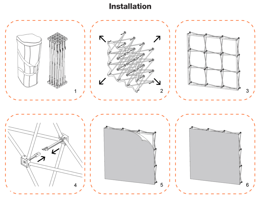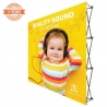 Custom graphics attach to the frame with Velcro? adhesives, while printed end caps offer a polished look.