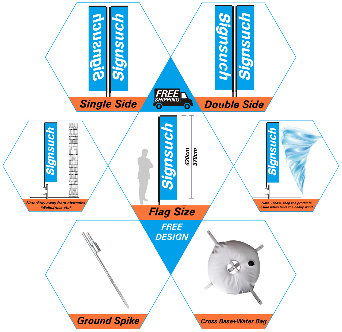 Standard Price Include : 1piece Polyester Fabric Custom Flag with Single Side Printing , 1piece Fiberglass Pole With Simple Carry Bag , 1piece Spike Base ,