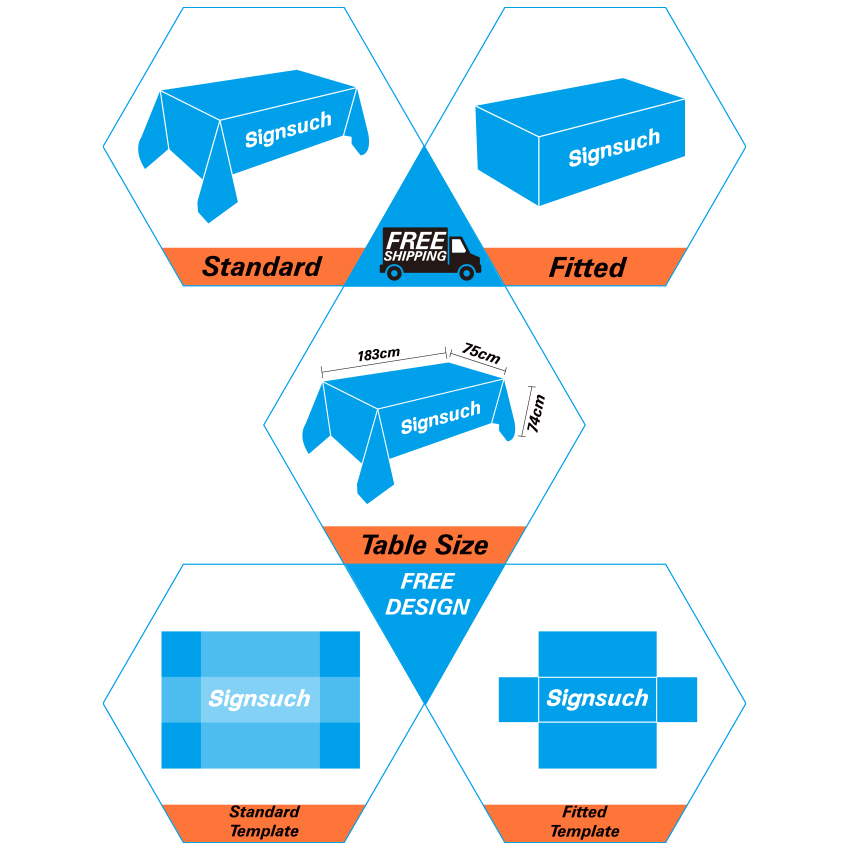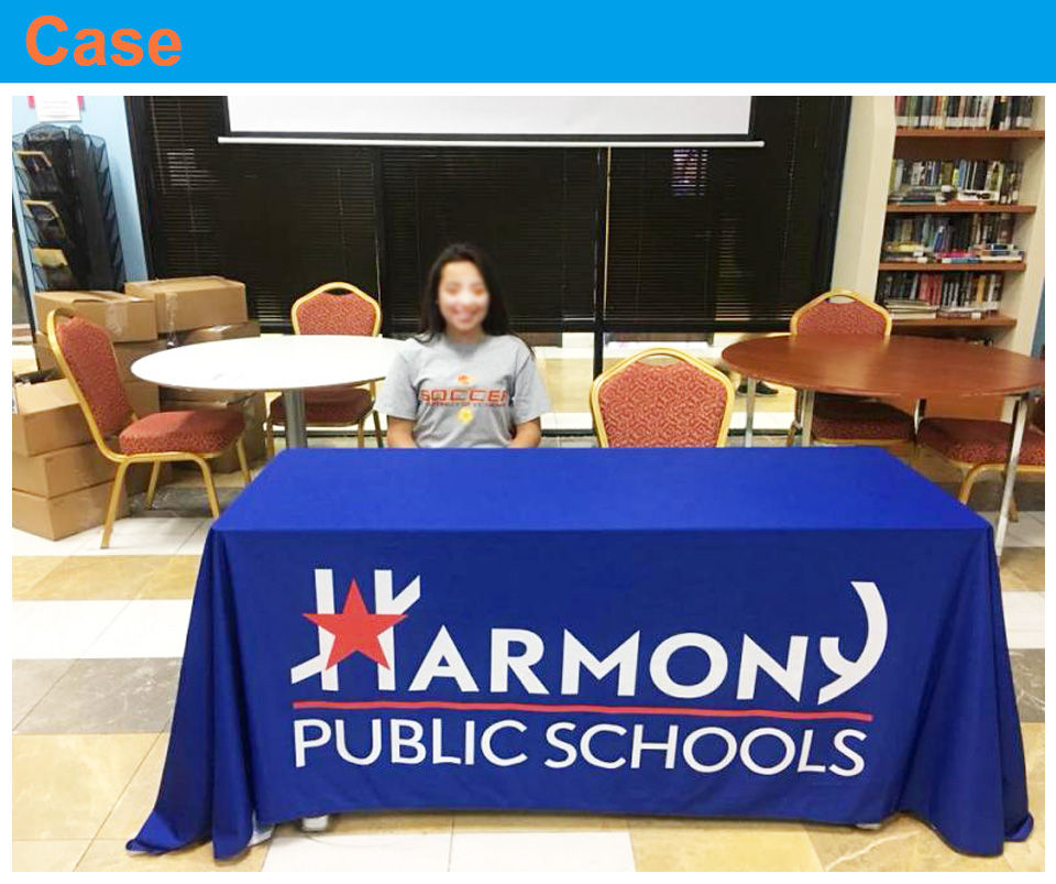 This table cover, also known as a tablecloth, is printed using a full-color dye-sublimation procedure.
